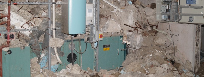 Tijdens de sloop van een gemeentelijk energiebedrijf troffen we dit aan in een gedeelte van een kelder. Kelders waren ontoegankelijk gemaakt door de gemeente door de ingangen vol te gooien met puin. Foto's: